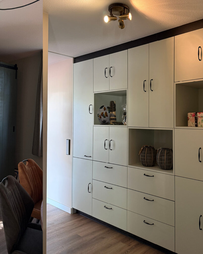 Voor dit interieur mocht ik de kleuren uitkiezen en ondersteunen met de indeling! ๐ Wat een mooie, kleurrijke boel is het geworden: van de benedenverdieping tot de slaapkamers boven. Voor dit project zat de uitdaging in de indeling met een rolstoel: deze moest overal praktisch goed langs kunnen, en dat is zeker gelukt. Met in de hal een eigen ontworpen maatwerkkast is deze woning helemaal af!