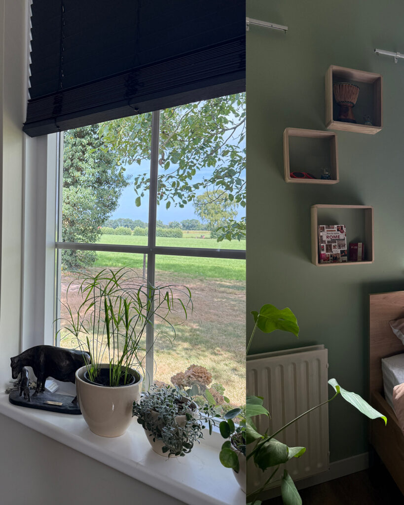 Wat je goed kunt zien, is dat deze familie erg fan is van de kleur groen! Een logische keuze, want groen geeft een fijn gevoel in de ruimte en het huis staat bovendien in een weiland ๐ฑ. Extra leuk om dat buitengevoel ook binnen te laten zien!